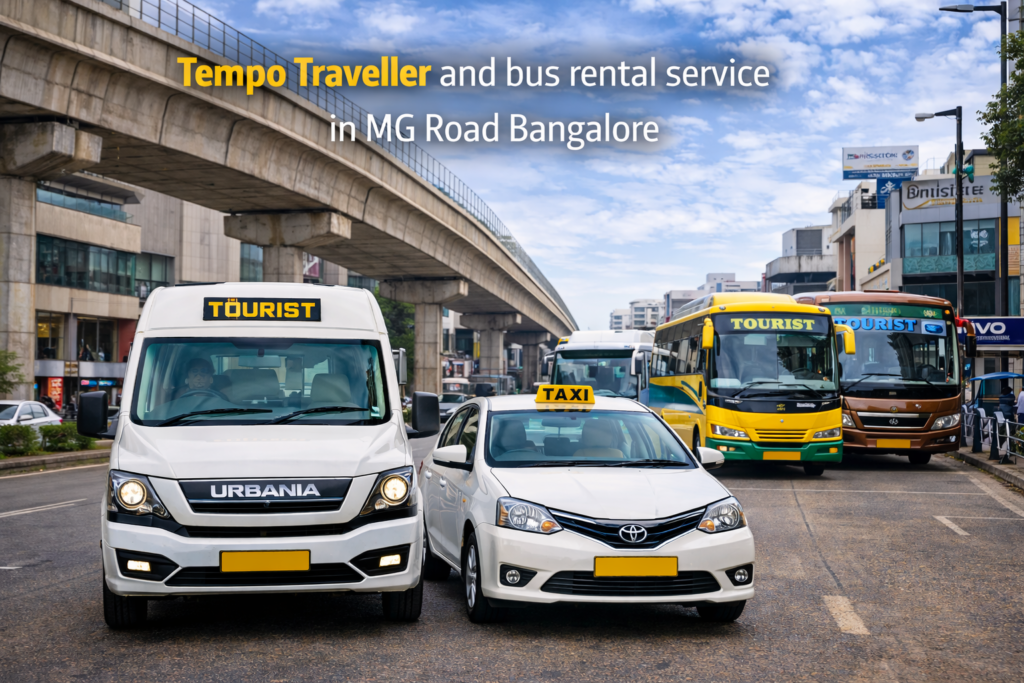 Yes, we offer Tempo Traveller and bus rental services in MG Road Bangalore for family tours, corporate trips, weddings, school trips, and group travel.